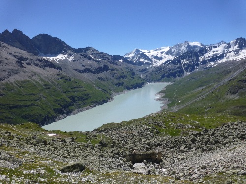 Vous pouvez accéder au couronnement du mur (2365m) en téléphérique. La vue depuis le couronnement est dégagée d’un côté sur le Val des Dix et de l’autre en fond les glaciers.