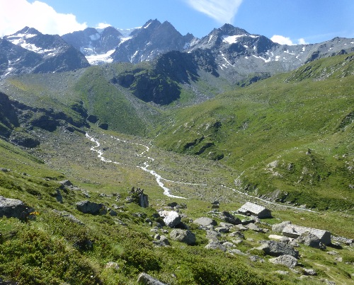 On retrouve ensuite un sentier plus marqué qui descend à proximité de l’ancien refuge de Penna (2769m), gravit la pointe du même nom (2782m) et longe une crête vers Tita de Bou (2495m) que l’on atteint en 4h environ.
