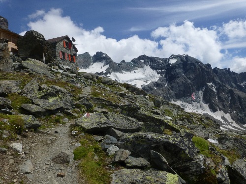 La cabane Valsorey se situe sur le flanc sud-ouest du Grand Combin en Valais suisse, sur un éperon rocheux en face du Mont-Vélan.