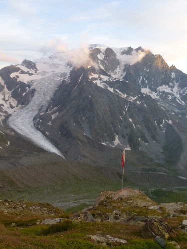 Un nouveau sentier permet de redescendre de la cabane par un itinéraire panoramique de toute beauté, avec la chaîne du Mont-Blanc en point de mire.