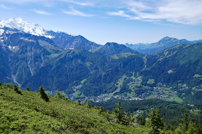 Retour par Pierre Blanche en profitant de la vue sur Passy, la chaîne des Fiz et le Mont-Buet.