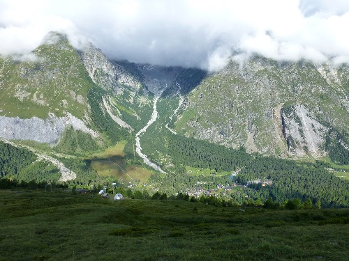 Vue sur le Mont Dolent et son bassin glaciaire de l’A Neuve ainsi que le Col Ferret pendant toute la montée (en vous retournant).