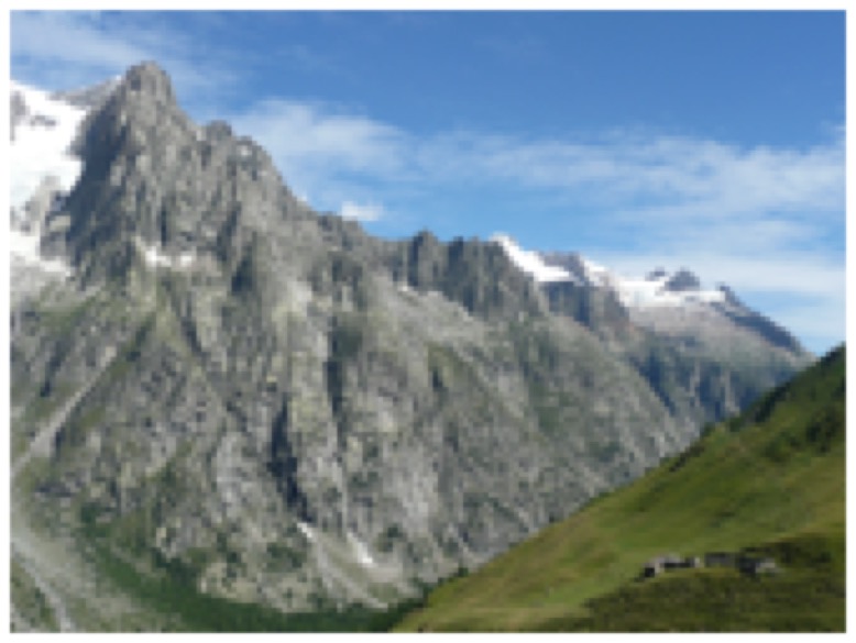Pour ce faire, empruntez le chemin de pierres à droite du torrent de Malatra (donc rive gauche) qui monte en lacets dans une forêt de mélèzes. A une première intersection, continuez sur votre gauche en direction du refuge de Bonatti. En sortie de l’étage forestier, on poursuit à travers les prés avant de rejoindre le refuge situé face aux Grandes Jorasses.
