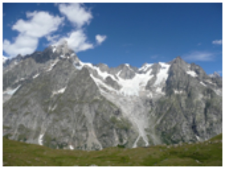 En face de vous, les Grandes Jorasses et à votre gauche le Mont Blanc de Courmayeur.