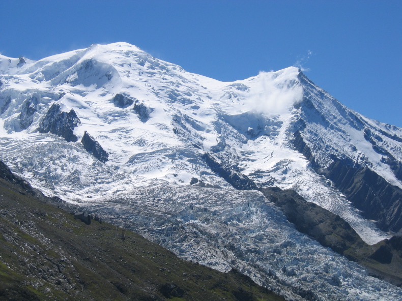 Avant de redescendre à Chamonix en empruntant à Plan de l’aiguille le premier tronçon du téléphérique de l’Aiguille du Midi, vous pouvez quitter le sentier un court moment et vous rapprocher des pylônes à gauche pour la vue imprenable sur le glacier des Bossons.