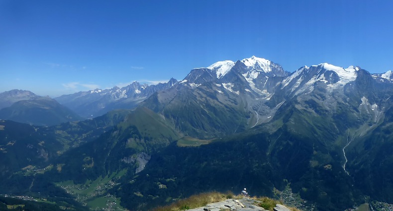 Une vue panoramique exceptionnelle à 360° au Mont-Joly avec sa table d’orientation grâce à laquelle vous pourrez repérer tous les sommets de la chaîne du Mont-Blanc.