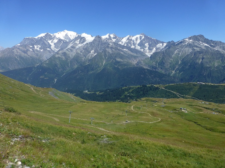 En fonction de l’heure, vous pouvez faire l’aller-retour (environ 30mn) à l’Aiguille Croche (2487m) mais veillez bien à attraper la dernière remontée mécanique à l’Etape. Vous en avez suffisamment pris plein la vue ! Il convient de penser sérieusement au retour. Départ du bas de l’Aiguille Croche au plus tard à 15h. Dirigez-vous vers le plateau en contrebas en prenant la piste sur votre gauche (ne pas prendre la direction du Col du Joly). Avec une descente rapide comptez 1h30 depuis le pied de l’Aiguille Croche pour retourner à Colombaz : en 45mn, vous serez aux Meys (1970m) et en 1h15, vous serez à Pré Conduit (1830m) où vous rejoignez le chemin emprunté le matin.