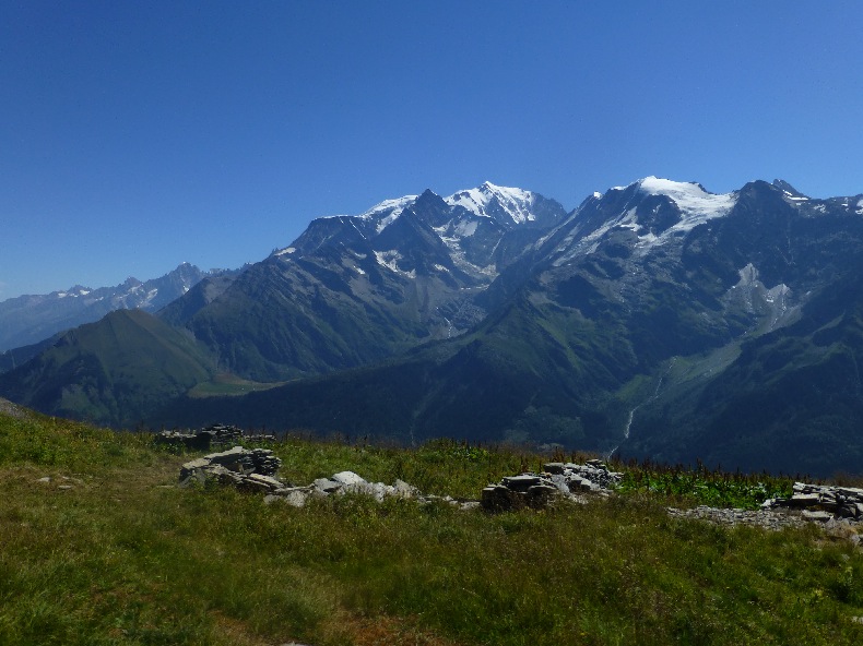 Plus qu’une demi-heure de marche sur le sentier de crête à droite (sentier assez large) pour arriver au Mont-Joly (2525m). Panorama XXL à 360° avec table d’orientation. Vous pouvez pique-niquer ici.