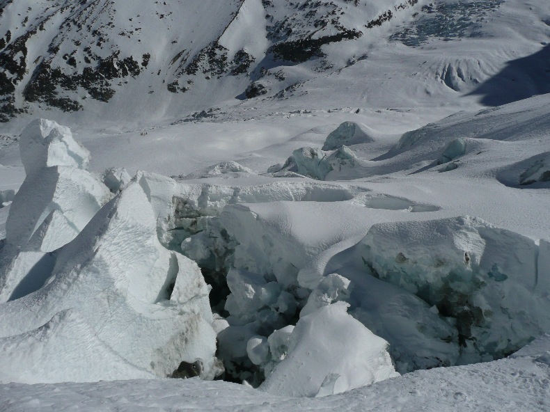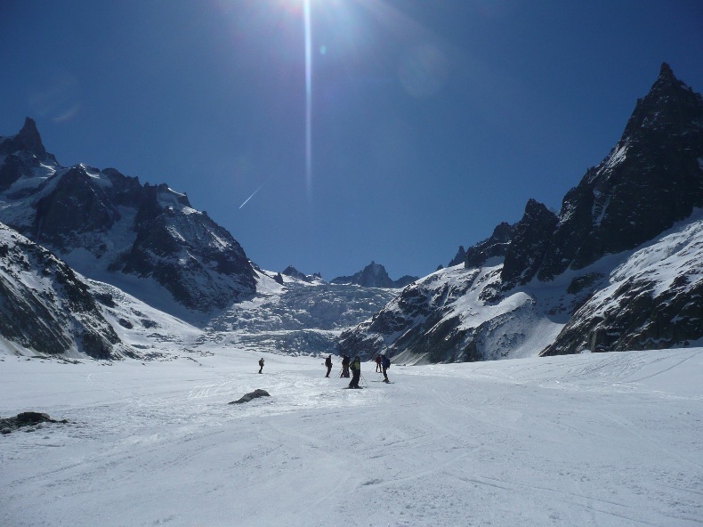 Cet itinéraire de 20km se déroule en haute montagne sur des glaciers enneigés crevassés. Il faut compter 4 à 5 heures de descente dont le premier tiers se déroule au-dessus de 3000m.
