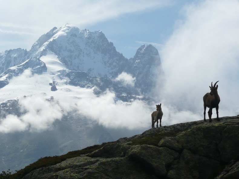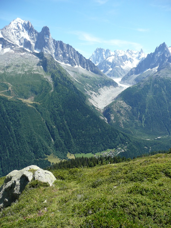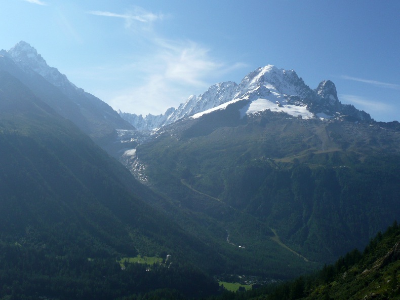 À 1h45, panorama à 180° sur la chaîne du Mont-Blanc et ses sommets mythiques, Aiguille du Tour, Aiguille du Chardonnet, Aiguille Verte et les Drus.