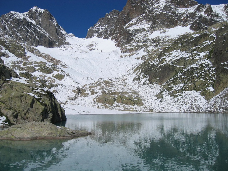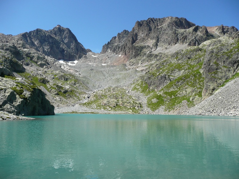 L’été, le Lac Blanc dégelé (en réalité 2 lacs glaciaires joints) est d’une couleur turquoise. Passer sur la droite du premier plan d’eau pour aller pique-niquer au bord du second lac, plus calme. Certains courageux prennent un bain (rapide !) dans le lac glacière. Les chocards (gros corbeaux) à bec jaune guettent les miettes.