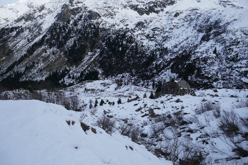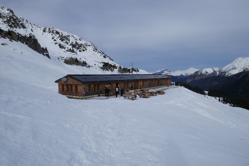 Uniquement si la neige est sécurisée et la trace est faite, vous pouvez faire une boucle par le chalet restaurant la Balme (1706m). L’itinéraire d’hiver n’est plus fléché, il contourne la barre rocheuse pour plonger (piste d’été) en direction des chalets que l’on aperçoit en contrebas. Ne pas suivre les traces qui traversent la zone avalancheuse en direction du col du Bonhomme (2ème pylônes) mais plonger avant sur la gauche vers les chalets que l’on rejoint en 45mn.