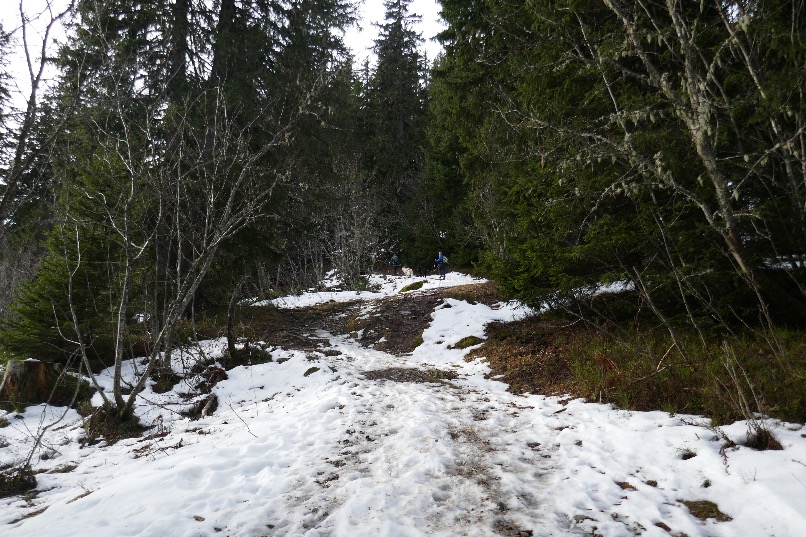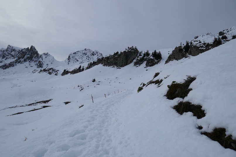 Après une rude montée en forêt, on sort de l’étage forestier au niveau des chalets des Prés, dans un champ de neige à 1800m (compter1h30 depuis le départ), où il vous faudra chausser les raquettes si ce n’est pas encore fait. Encore 45mn pour rejoindre le refuge (1935m) qui sert une petite restauration et des boissons (https://www.lerefugedespres.com/fr/, vérifier la période d’ouverture).