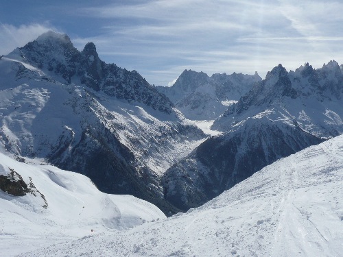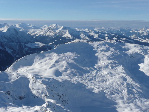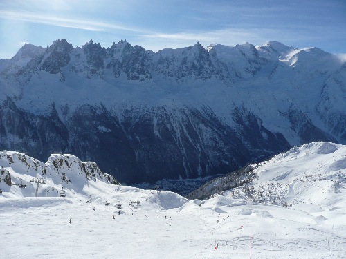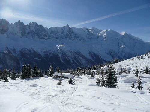 A conseiller le matin, domaine très ensoleillé en versant sud, pistes face au Mont-Blanc