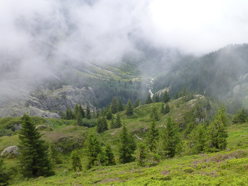 A 1h30, nouvelle intersection, poursuivre sur la gauche Refuge de Tré La Tête par chemin Bernard (et non par la forêt). Myrtilles en chemin.