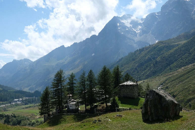 Continuer le plus à droite possible en longeant le torrent vers la grande cascade. Nombreux cris de marmottes. Avant d’arriver au golf, remonter légèrement une sente sur la gauche qui contourne une minuscule chapelle. On rejoint ainsi le village de Breuil qu’il ne vous reste plus qu’à traverser pour rejoindre le parking.
