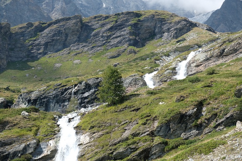 Pour le retour, je vous déconseille la piste 13 que tout le monde emprunte. Redescendre par le sentier fléché 65 sur la droite beaucoup plus sauvage, au milieu des prairies fleuries, torrents et cascades. Au bout de 1h, on arrive au croisement de l’itinéraire 65 et 12. Suivre sur la gauche l’itinéraire 12 qui rejoint la piste 13 au niveau de Crot de Palet en 30mn. Continuer la descente vers Breuil Cervinia mi piste, mi-sentier par l’itinéraire 12 qui coupe tous les lacets de la piste 13.