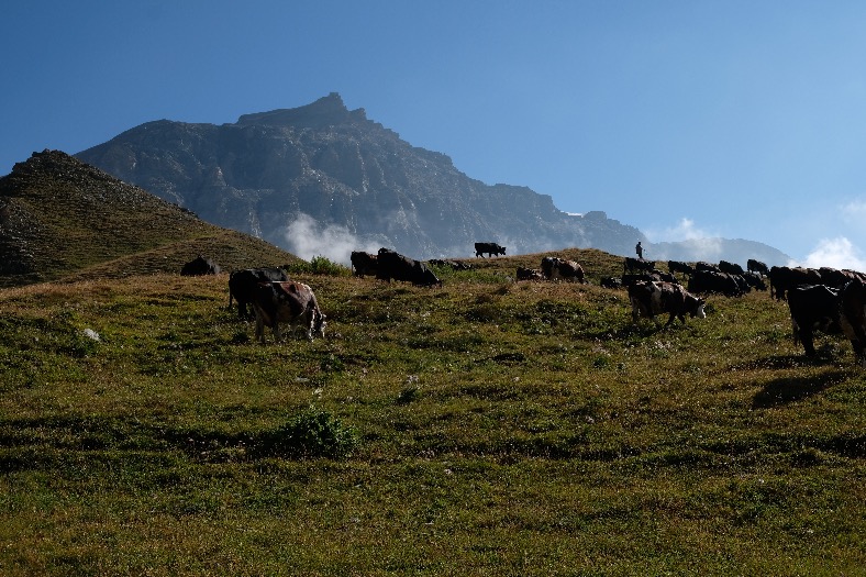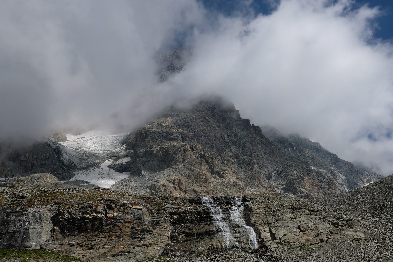 A Plan Maison, au sortir de la télécabine, suivre le fléchage 14 ou 65 en montant légèrement sur la gauche. Le temps indiqué pour le refuge est de 1h10 mais compter plutôt 1h30 si vous voulez profiter des magnifiques vues sur le Cervin tout au long de la montée et prendre votre temps pour faire des photos. Le sentier s’élève à travers les alpages de vaches avec leur berger. Arrivée à la bifurcation, laisser sur la droite l’itinéraire 14 et continuer sur la gauche l’itinéraire 65 jusqu’au refuge. L’univers devient minéral. Un peu avant d’arriver au refuge, magnifique cascade au pied du Cervin.