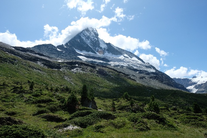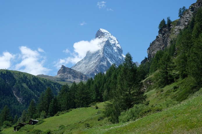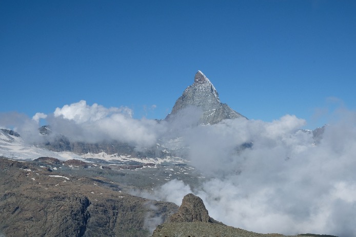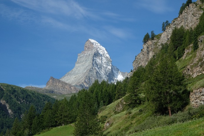Zermatt (1620m) est un village mythique situé au pied du Cervin (Matterhorn 4478m) et entouré de nombreux sommets qui culminent à plus de 4000m. Zermatt est relié à Chamonix par la Haute Route et par l’histoire de l’alpinisme. C’est un endroit très touristique mais la nature environnante est époustouflante.