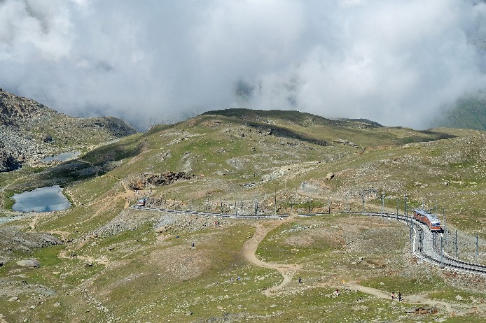 Autre possibilité, depuis Riffelalp, rejoindre Sunnegga en passant par les lacs de Grunsee, Moosjisee et Leisee, puis redescendre à Zermatt par le funiculaire depuis Sunnegga.