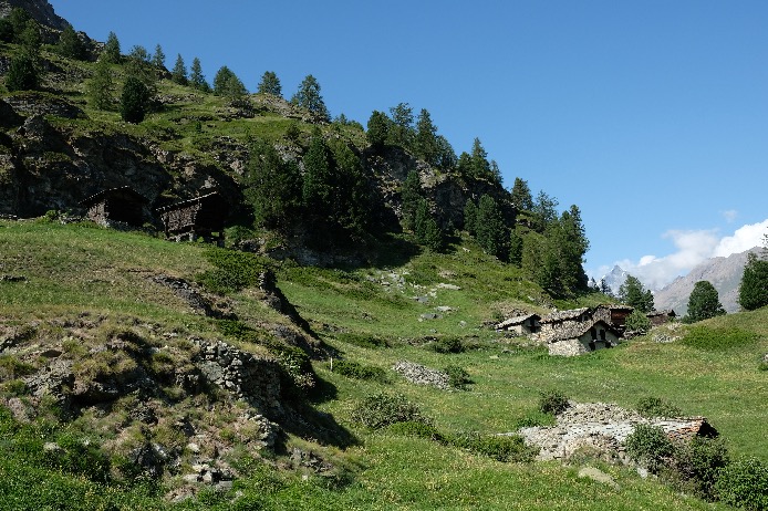Depuis Schwarzsee, superbe balade pour redescendre à pied à Zermatt par les alpages au pied du Cervin et en passant par des villages typiques (Zmutt, Zum See, Blatten) ; Compter 3h