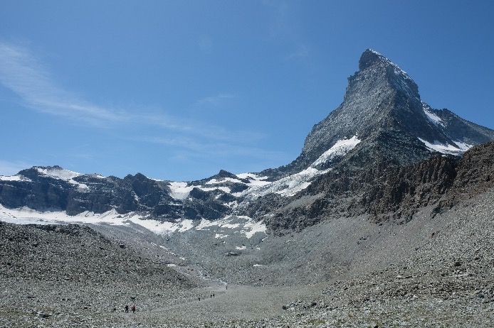 Depuis Trockener, vous pouvez redescendre à pied à la station intermédiaire de Schwarzsee dans un univers minéral ; c’est par cet itinéraire de haute montagne qu’on approche le Cervin de plus prêt. Compter 2 heures mais sans les arrêts et les photos donc 3h pour prendre son temps.