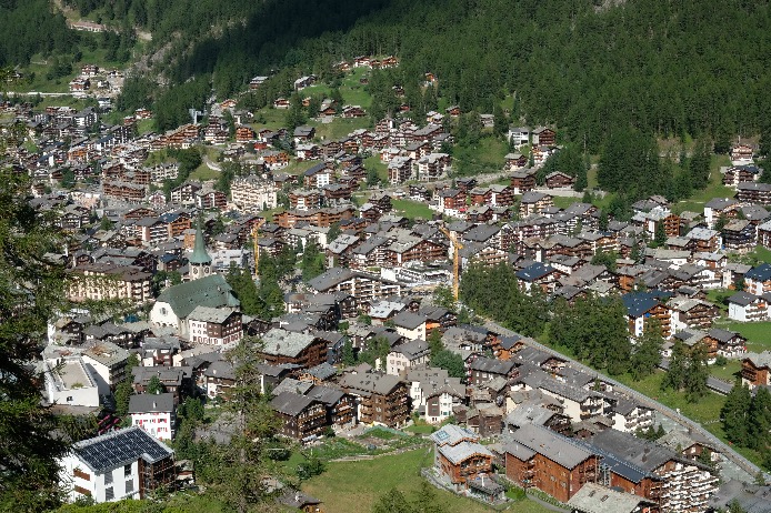 Le village est piéton, interdit de circulation aux voitures ; il faudra donc vous garer à Tasch (1450m) puis prendre le train. Je vous conseille de loger à Tasch (train 15mn) ou à Randa (train 20mn) si vous trouvez un hébergement avec parking. Il n’y a pas de solution miracle, plus on s’éloigne de Zermatt et moins le parking est cher mais plus le train est cher. Cependant, vous bénéficierez d’un hébergement moins cher dans des villages aux maisons et chalets typiques, en particulier à Randa (1439m), et loin du flot de touristes de toutes nationalités.